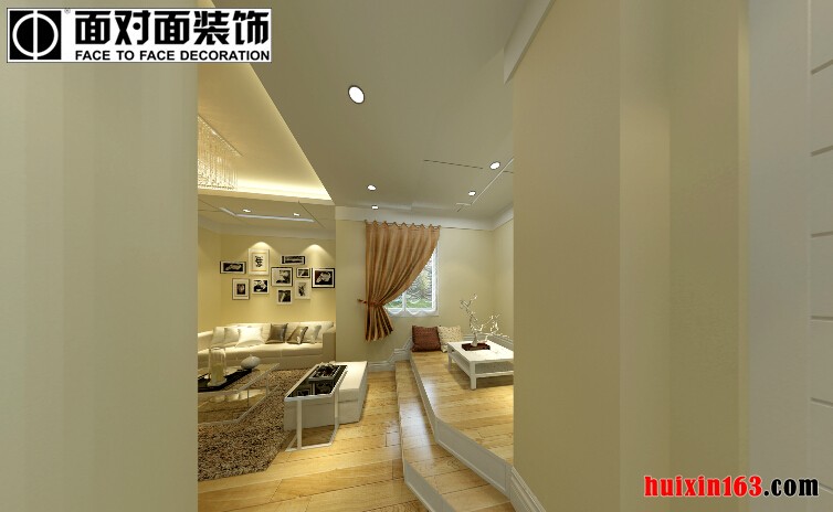 在客厅里面可以同时到空间的开敞和布局的清晰,通过在不同的区域上设计不同的顶面,以及在室内设计粗大的罗马柱,让室内的整体空间层次感非常的好。在地面上铺设原木色的实木地板,在靠近窗子的位置设计一个小的地台,地台上面摆放一个喷白的树枝,关于自然的元素让空间升腾起几分清新的田园气息。