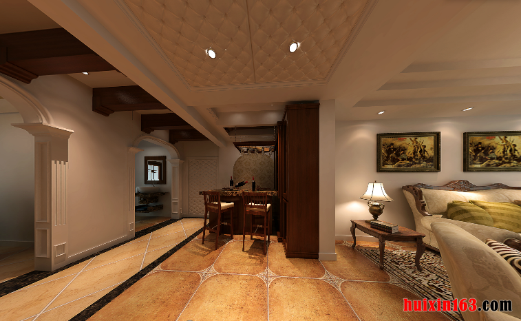本套为美式风格装修,客厅在设计上艺术,人文相结合,给我们展现出浪漫、豪华、奔放的的特性。而且经过现代气息的洗礼,我们更能感受到它的与众不同;餐厅:地面采用大理石装修,墙面采用白色乳胶漆进行装修,吊顶采用石膏板进行平顶吊顶,加以水晶灯做装饰,在灯光的照耀下,吊顶也泛着微微的光,就像一个漫天星一样,璀璨夺目,一排排椅子就好像一位位军人一样威武的站在餐厅内,餐桌上摆放了五香俱全的菜肴,闻着香味,感觉口水都要流下来了,一瓶瓶酒用纸包起来放在不长开关的壁橱上层,整体给人一种优雅华贵的感觉。